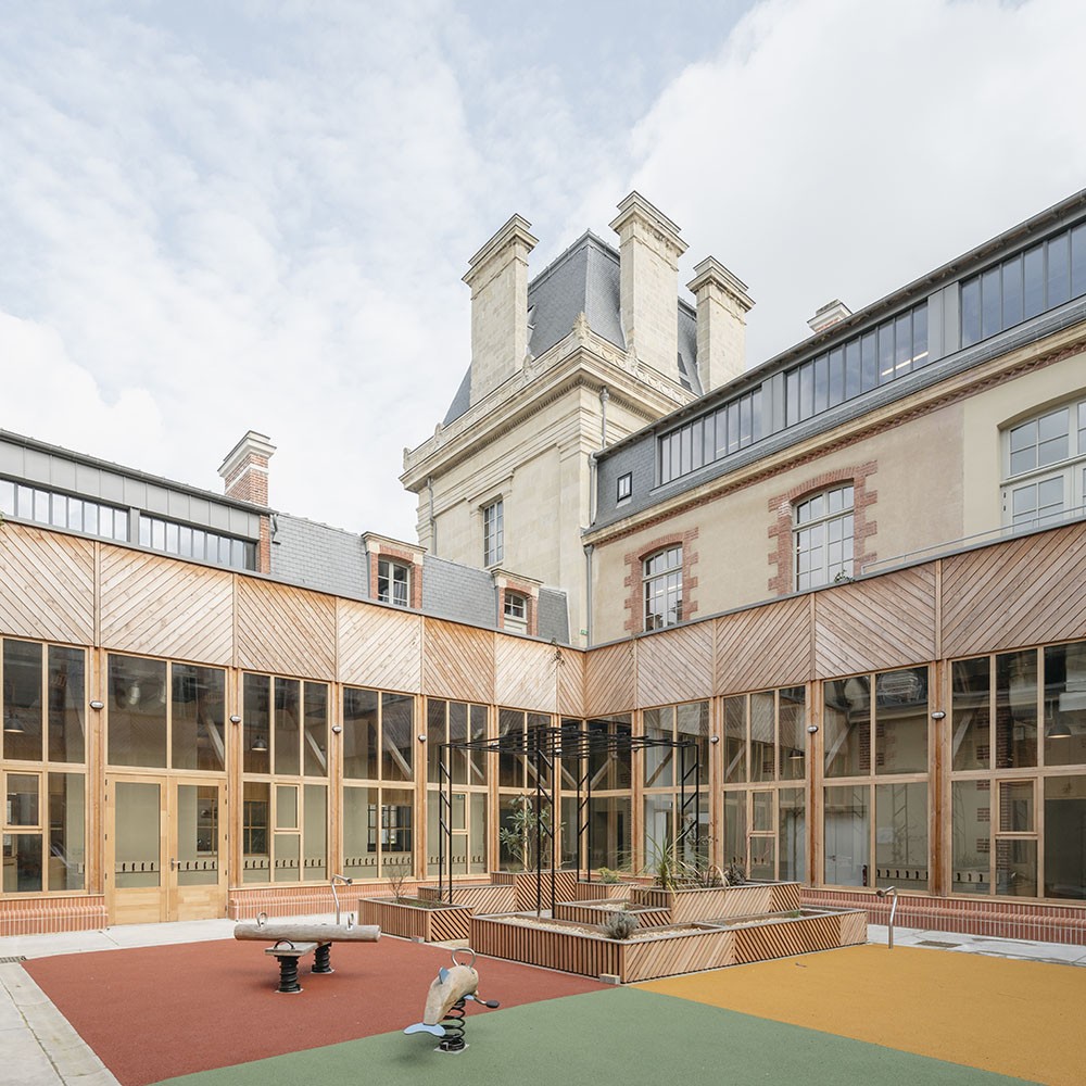 ProgrammeRéhabilitation et transformation du bâtiment existant pour pérenniser les activités de l’Hôtel Pasteur, implanter l’Edulab et une école maternelle de 8 classesR