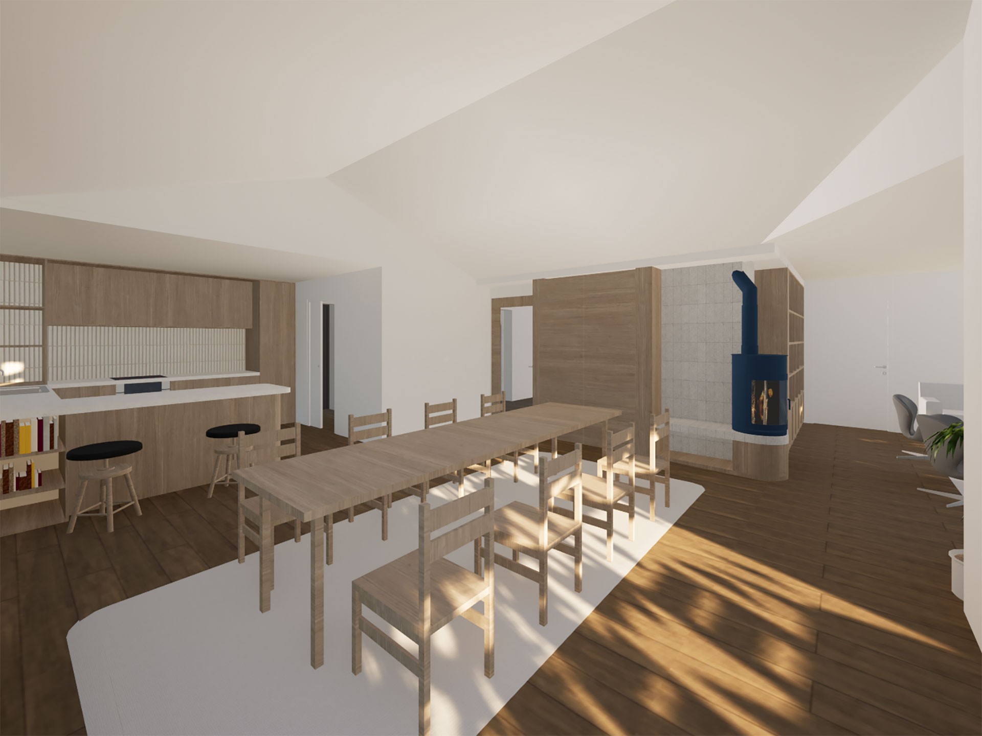 “Une maison de quartier” capable d’accueillir une multitude d’activités et de pouvoir héberger des personnes de passage, rendant visite à des habitant⸱e⸱s de la résidence intergénérationnelle.
